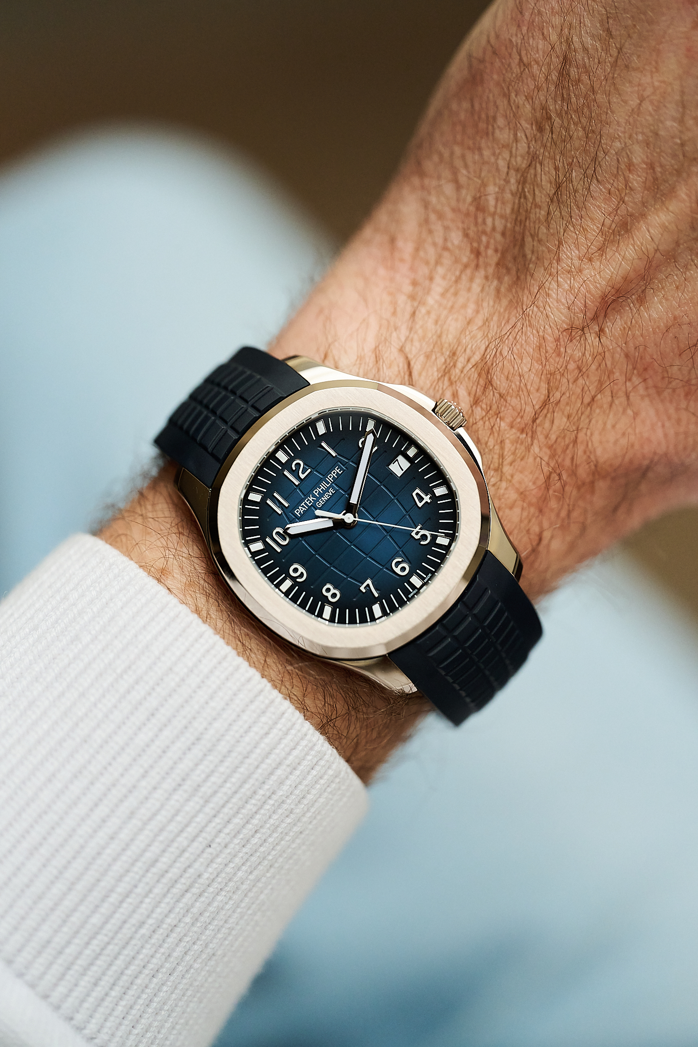 This particular reference is of course rose gold, and its gorgeous sunburst blue dial with black-gradient rim is embellished with twelve baguette-cut diamond hour markers (totalling 0.26ct), which give the watch the absolute perfect level of shine whilst remaining somewhat subtle in appearance.