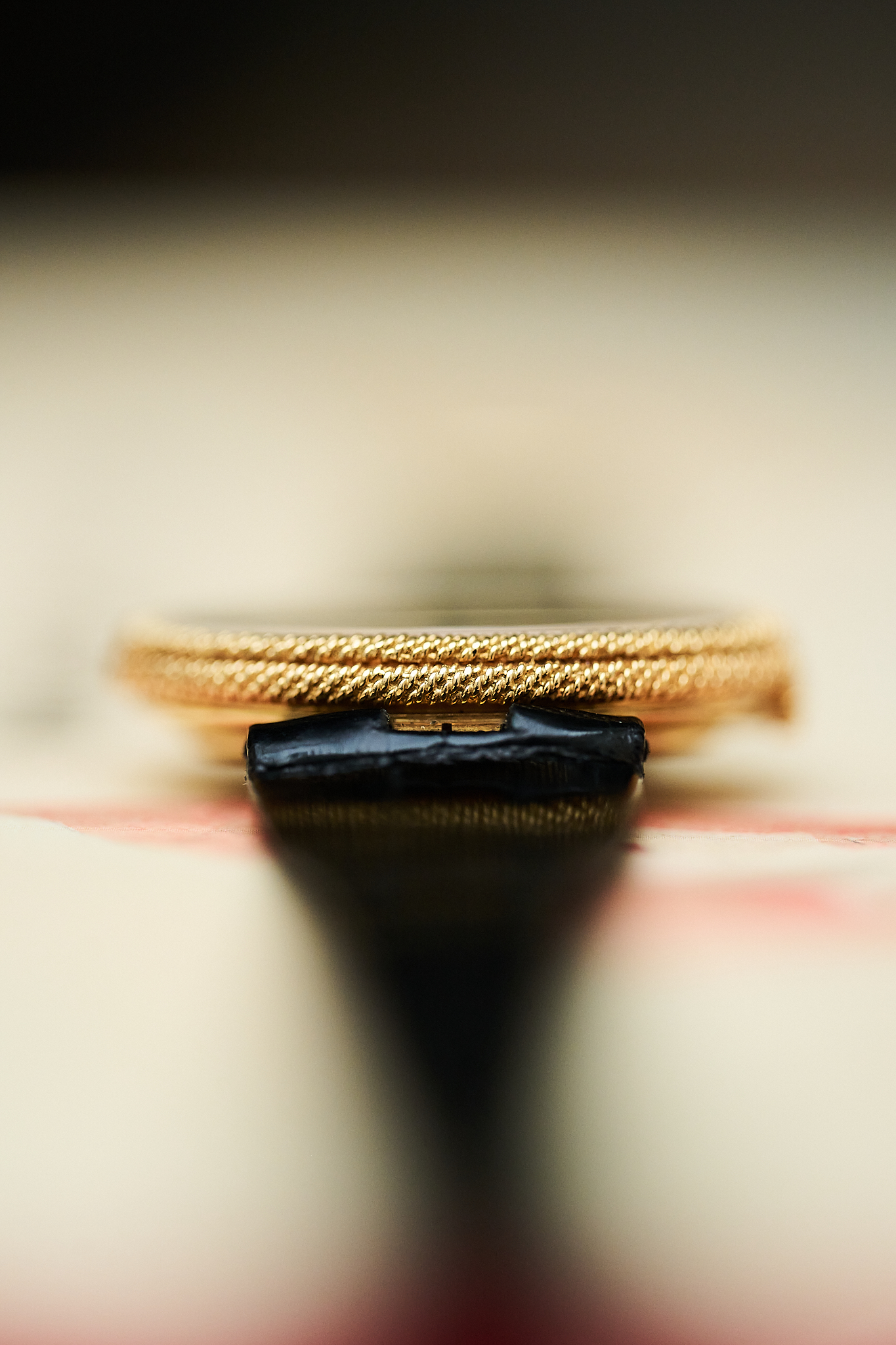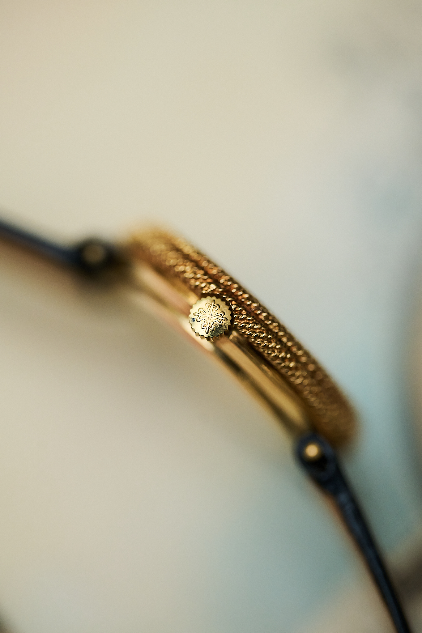 An elegant and quietly rare ladies’ Ellipse, the reference 4290 captures the restrained glamour of mid-century Patek Philippe design. Its distinctive yellow gold case is defined by a finely executed rope-like bezel - a delicate flourish that adds texture and depth to the watch’s classical form.