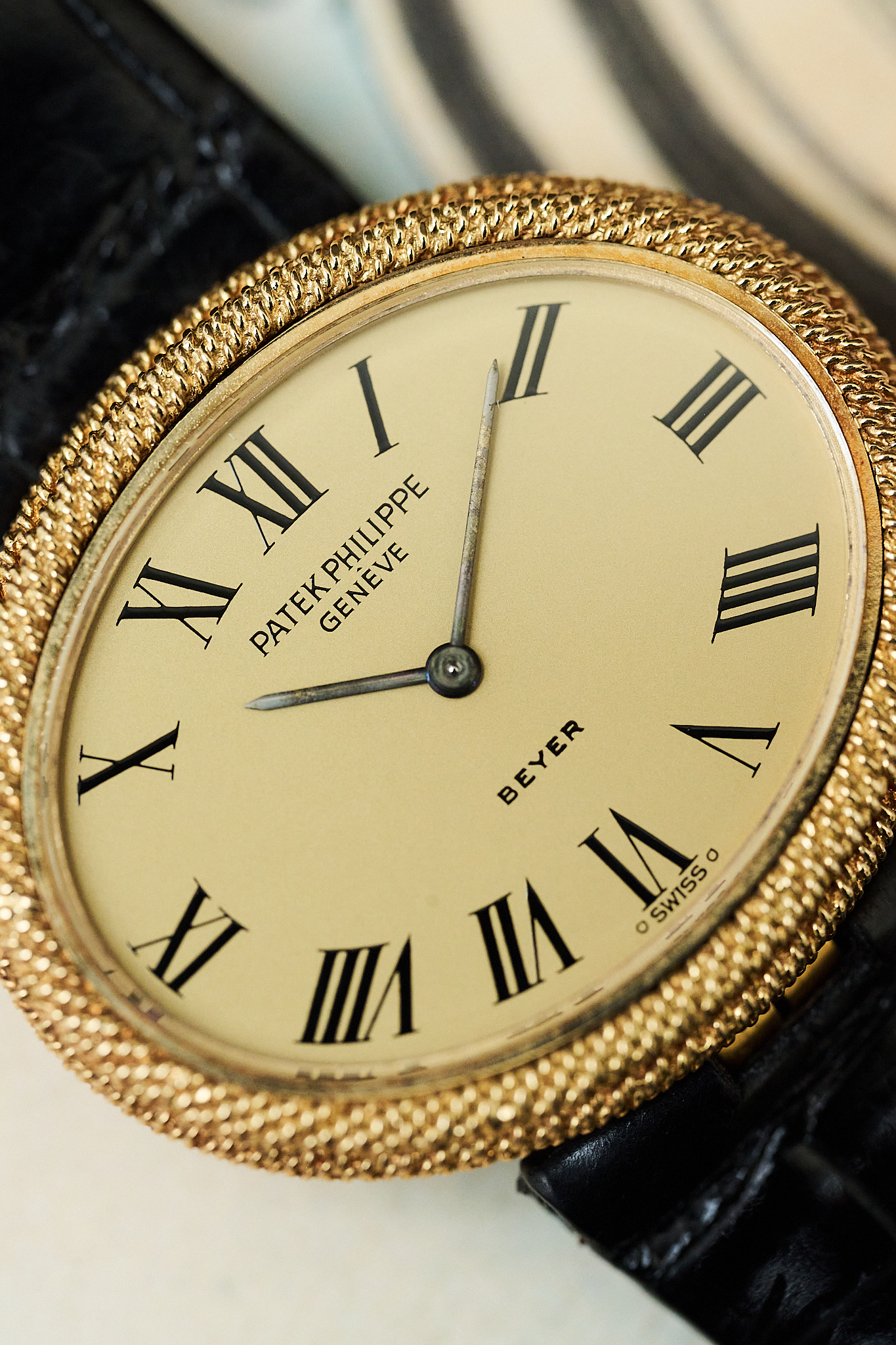Now available, a Patek Philippe Ellipse reference 4290, retailed and signed “Beyer” on its dial.