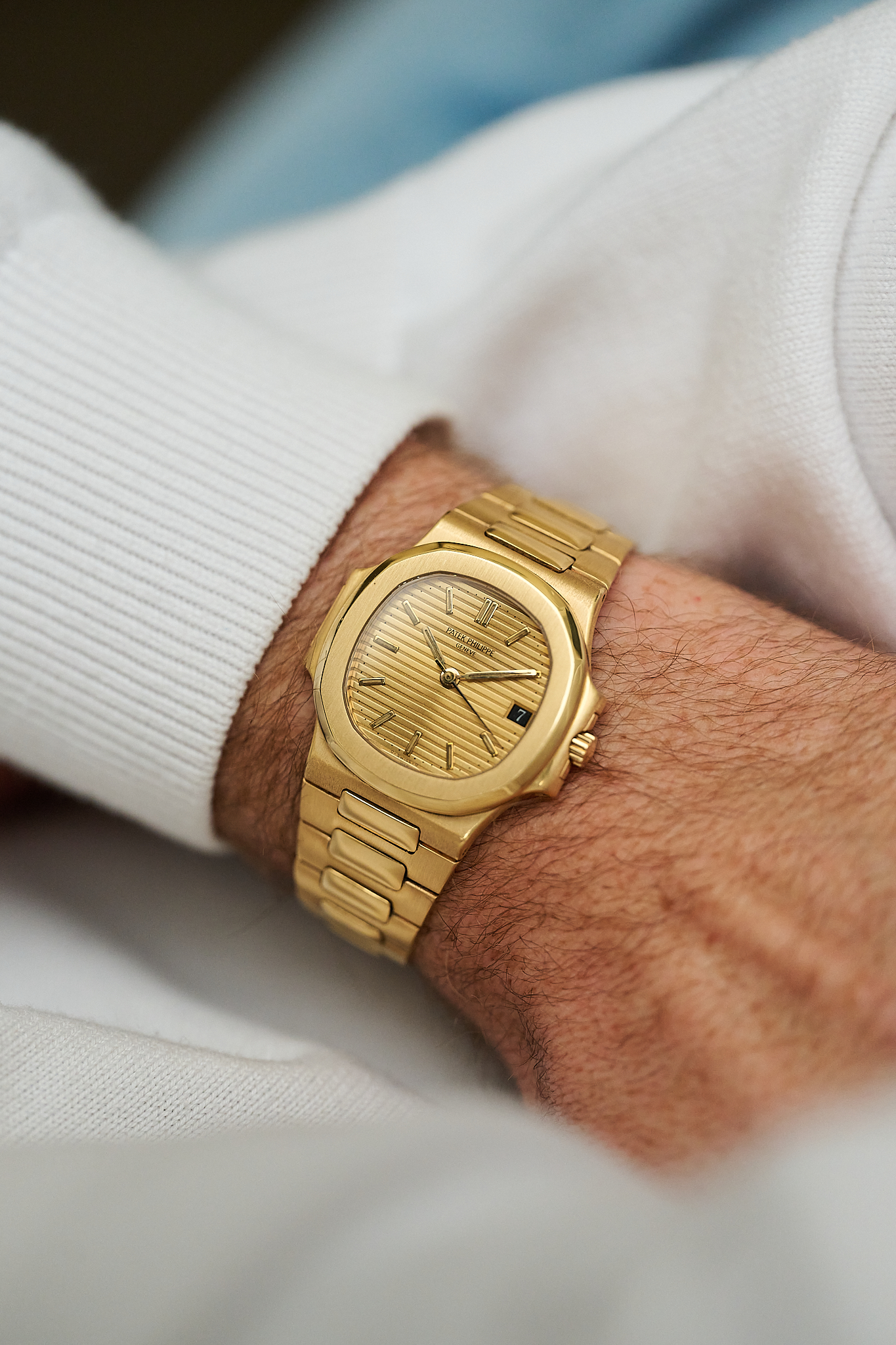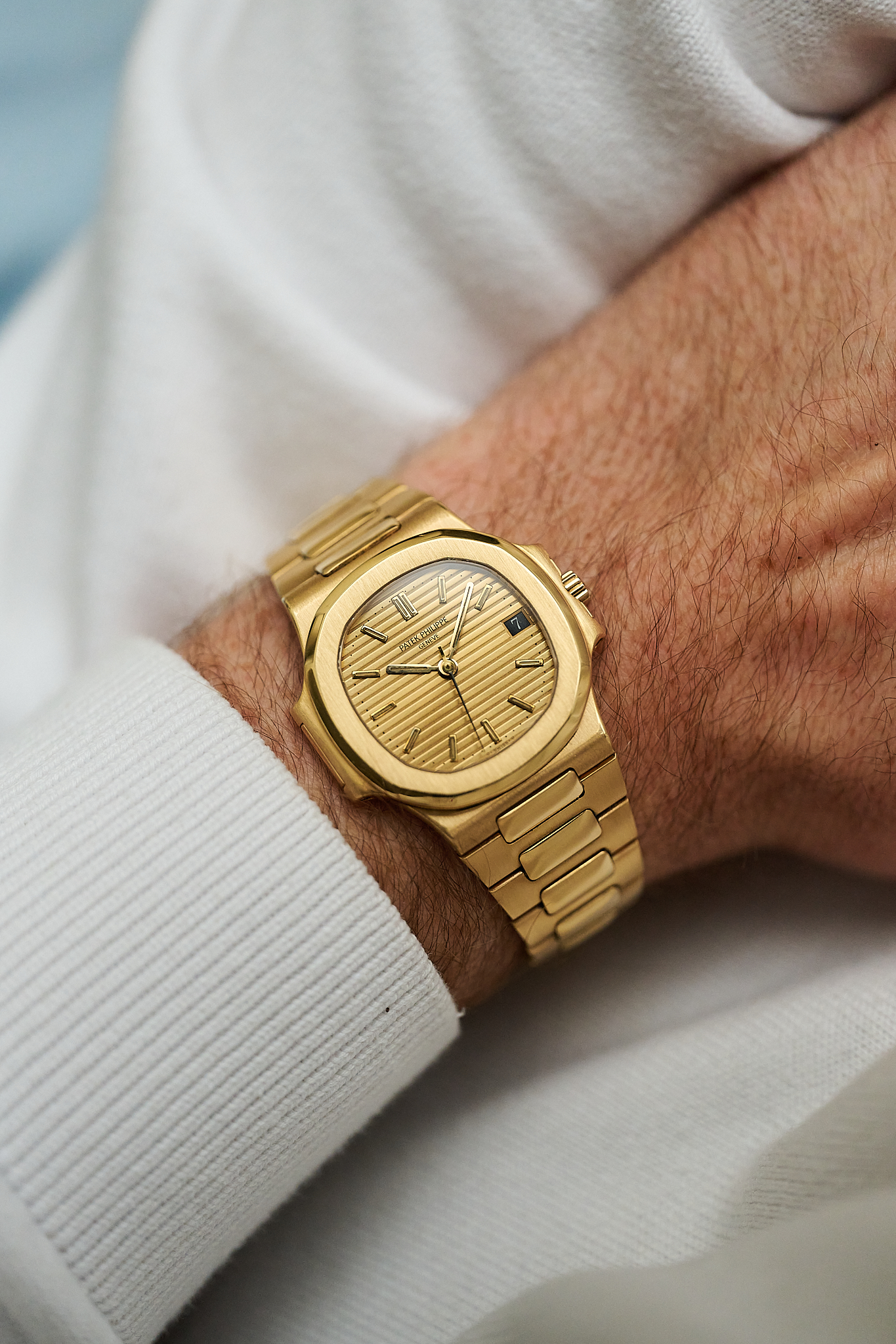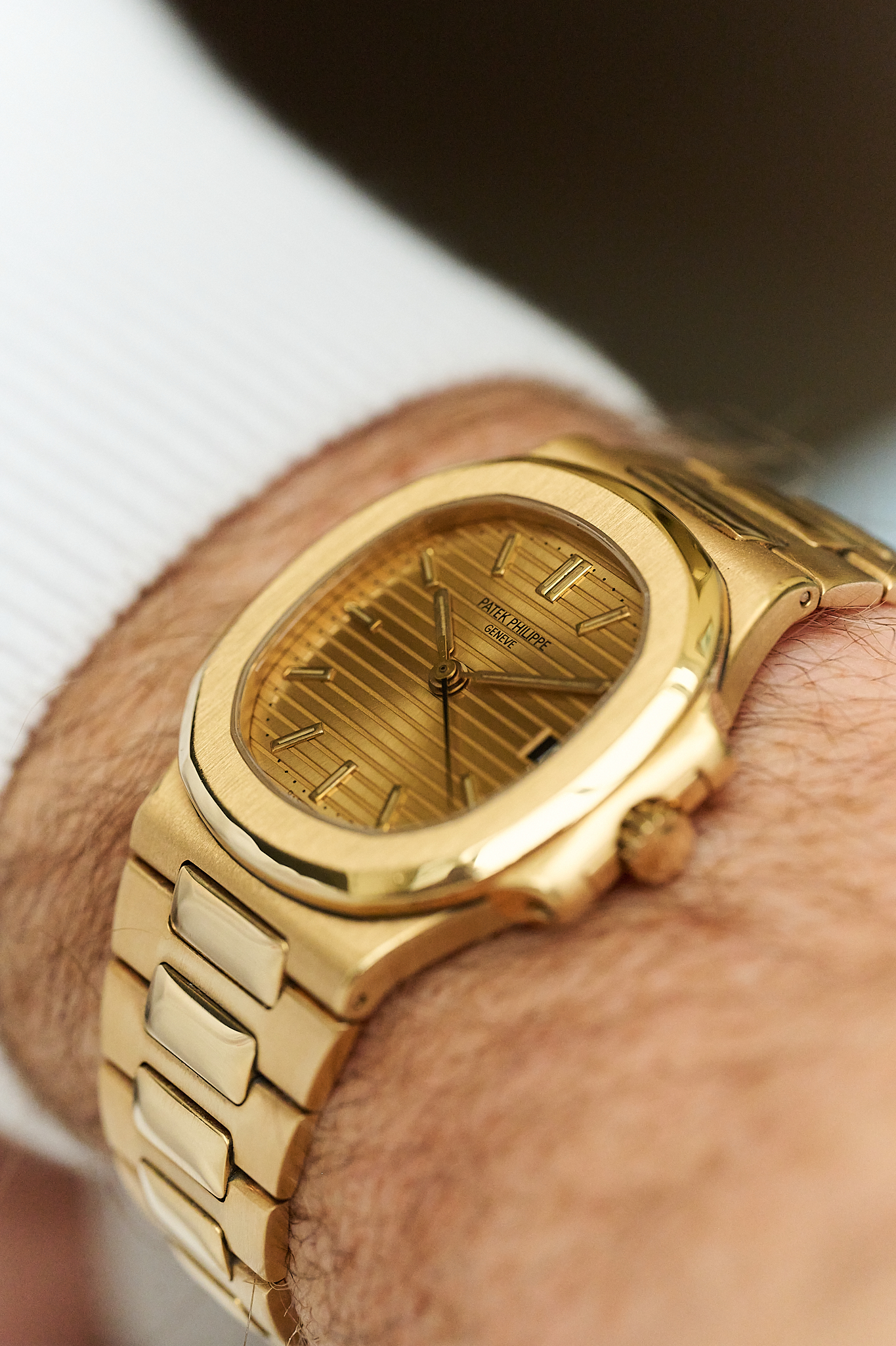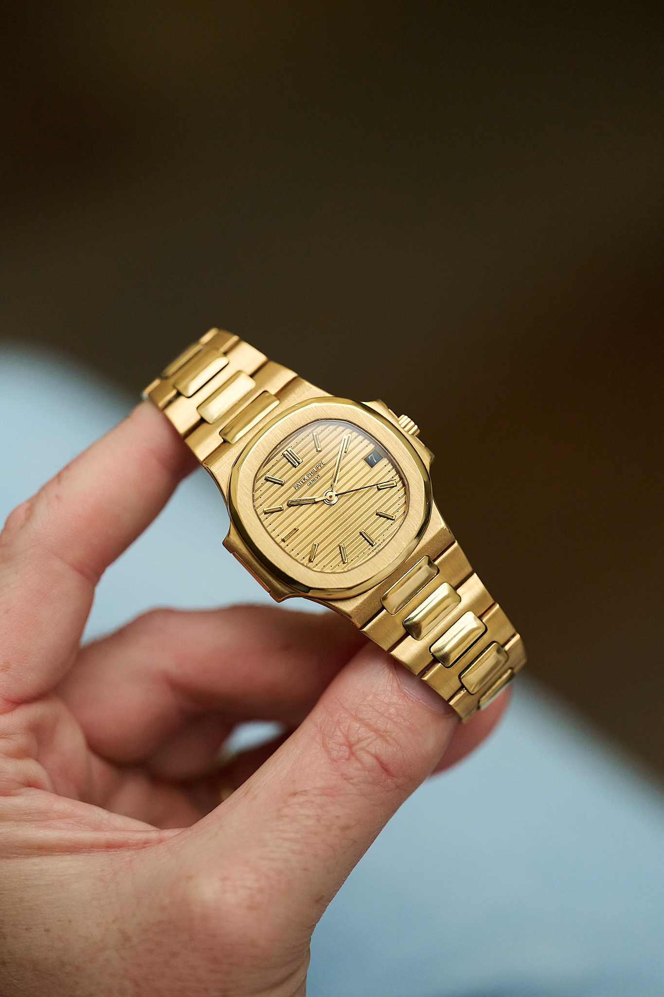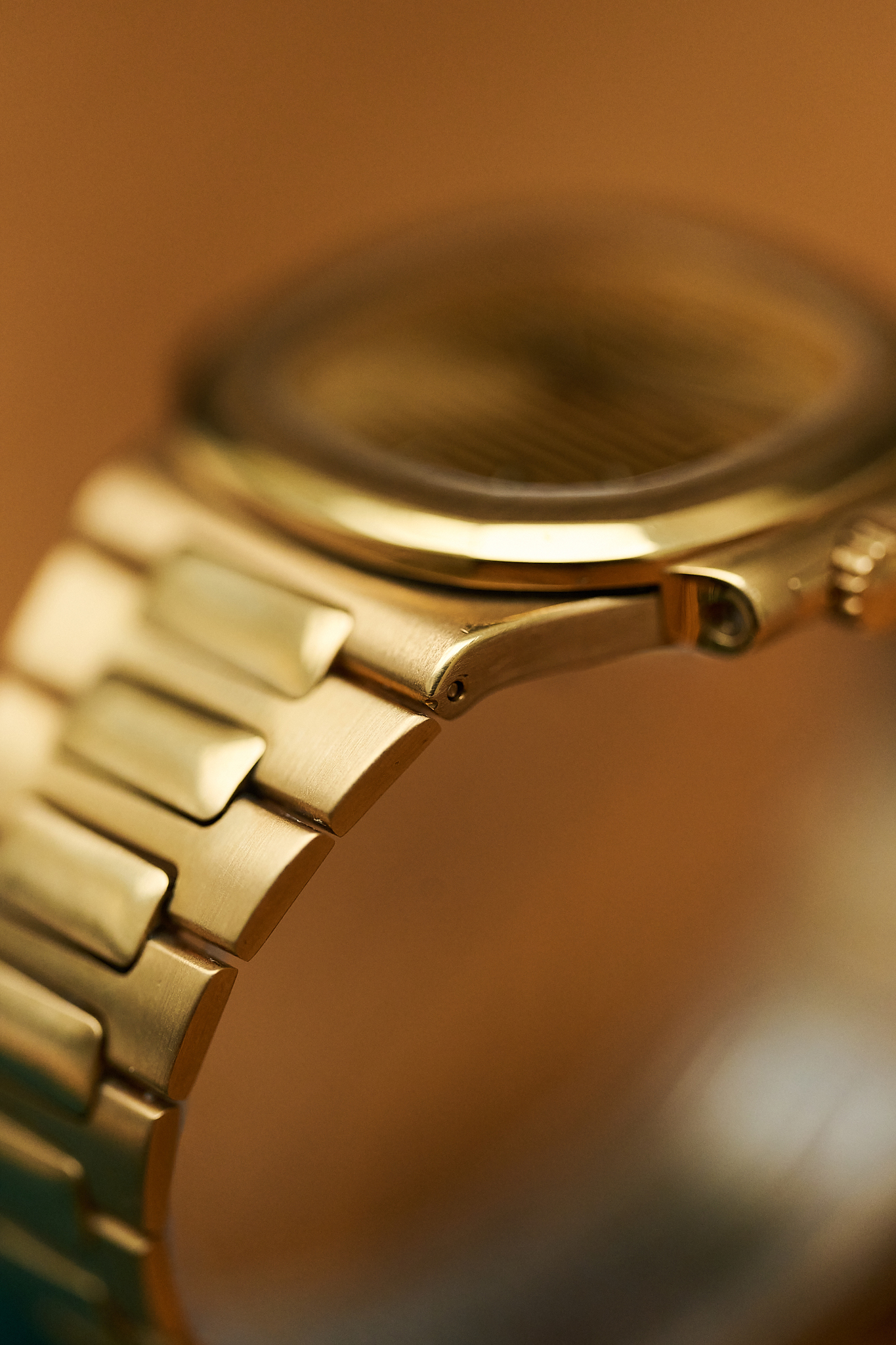 Introduced in 1981, the 3800 was the first mid-sized Nautilus, created in response to demand for a more versatile and wearable interpretation of Gérald Genta’s original 3700. At 37.5mm, it carried forward the design language that defined the Nautilus - the porthole case, horizontal ribbing and integrated bracelet - while introducing the in-house calibre 335 SC, bringing a central seconds to the model for the first time. Over its two-decade production run, the 3800 would evolve into an icon of its own, representing the refinement of the Nautilus concept in an era when precious metals were once again favoured over steel.