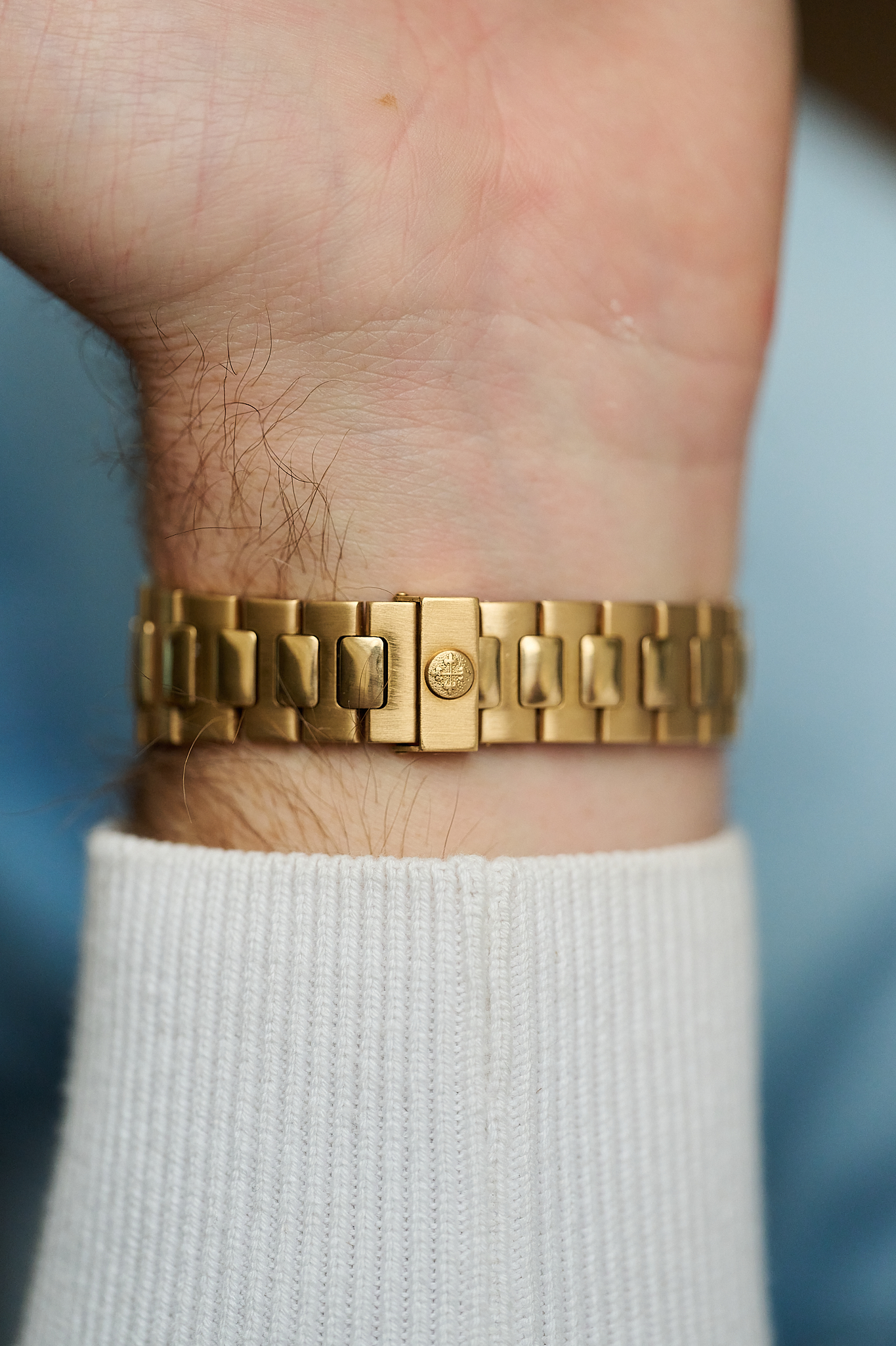 This particular example, manufactured in 1988 and sold in March 1989, stands out for its exceptional condition and rarely encountered “doré” dial - a tone that perfectly complements the yellow gold case and bracelet, and the contrasting black date aperture adds balance and visual depth. The bracelet shows minimal stretch and remains fully linked, while the original dial and hands are perfectly preserved, their gentle patina only enhancing the watch’s depth and character.