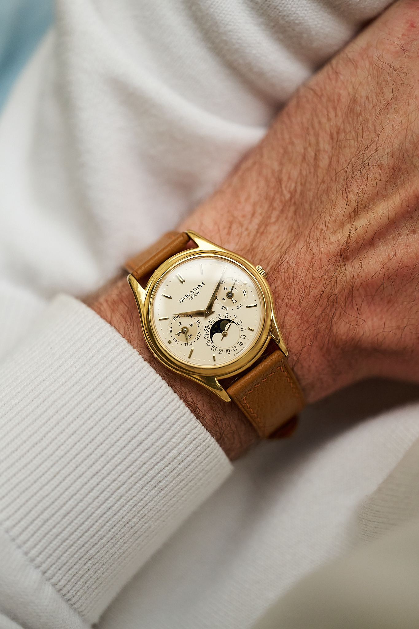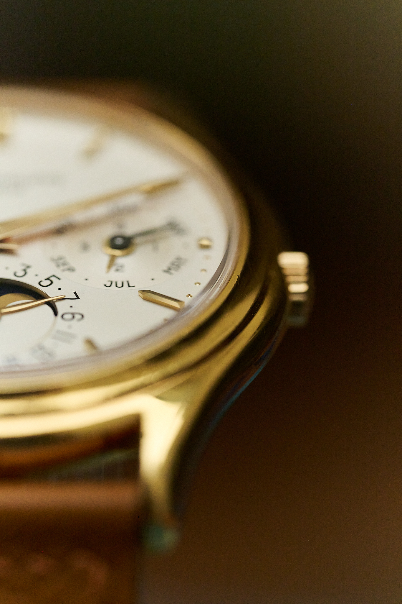 The 3940’s significance hardly needs retelling: launched in the mid-1980s at a moment when high watchmaking felt almost contrarian, it became the blueprint for Patek’s modern perpetual calendar - slim, elegant, mechanically poetic. But within the reference lie subtle evolutions, and the early second series sits in a particularly sweet spot. You get the beautifully balanced, serif-rich dial font of the first generation, paired with the slightly later production refinements that followed. The result is a dial that feels wonderfully classical, yet unmistakably Patek.