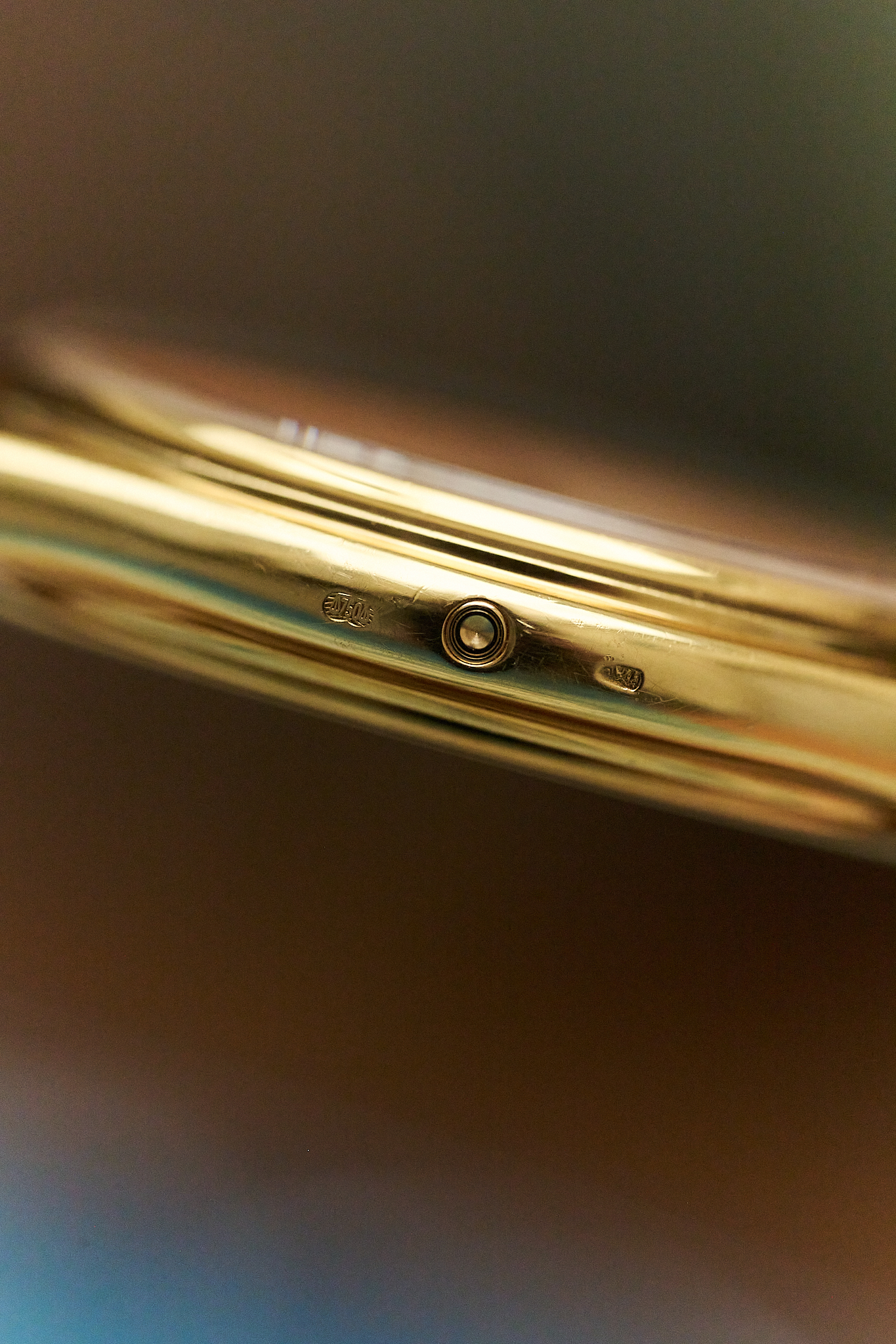What truly moves the needle here, however, are the hallmarks. Many yellow-gold 3940s have lost their case-side punches to time, wear, or overzealous polishing - but this example retains exceptionally crisp hallmarks, deep and defined in a way that immediately communicates careful ownership. For collectors who prize untouched metalwork, it’s exactly what you hope to see and almost never do.