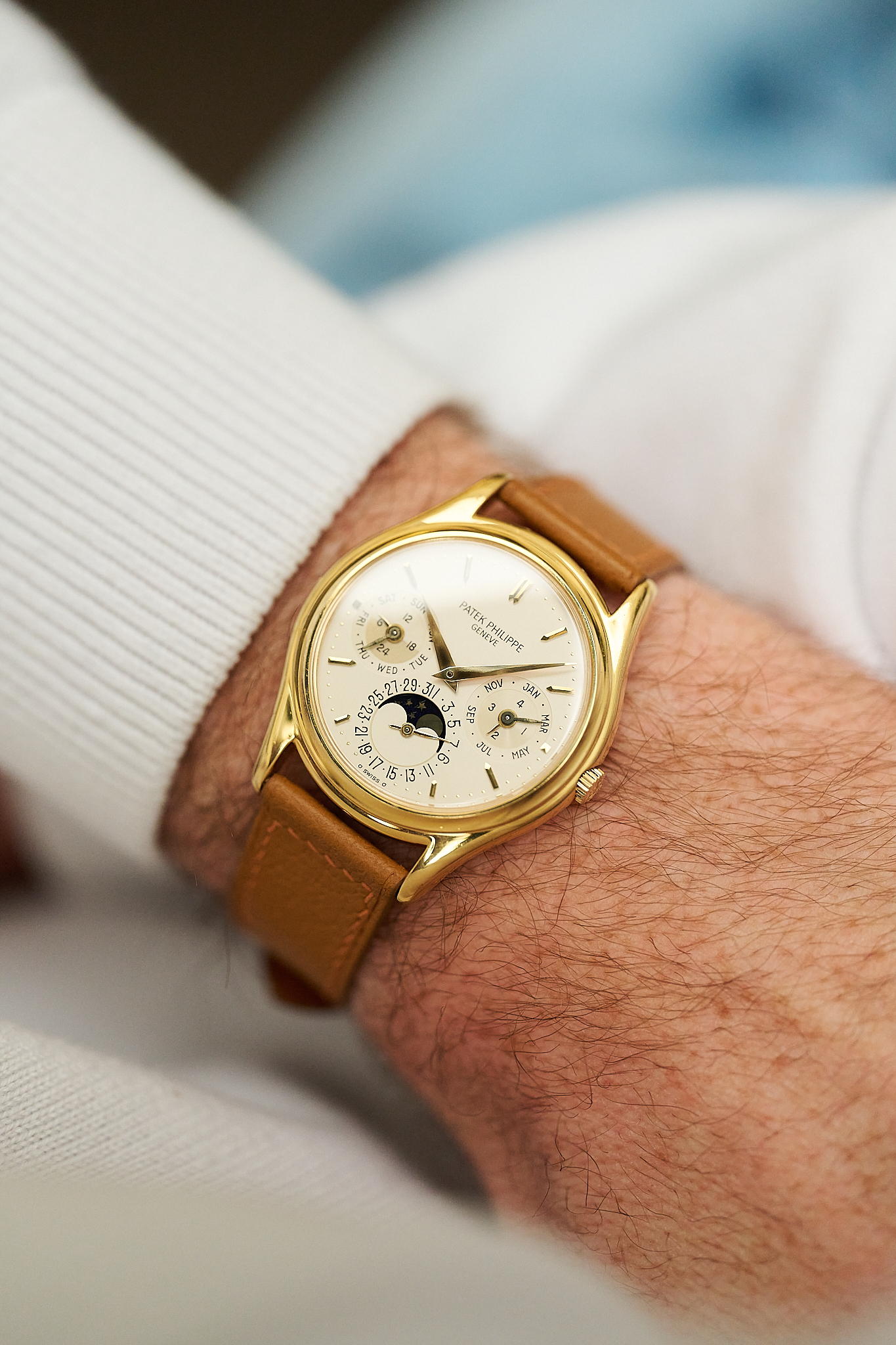 Now available, an exceptional early second-series Patek Philippe Perpetual Calendar reference 3940 in yellow gold.