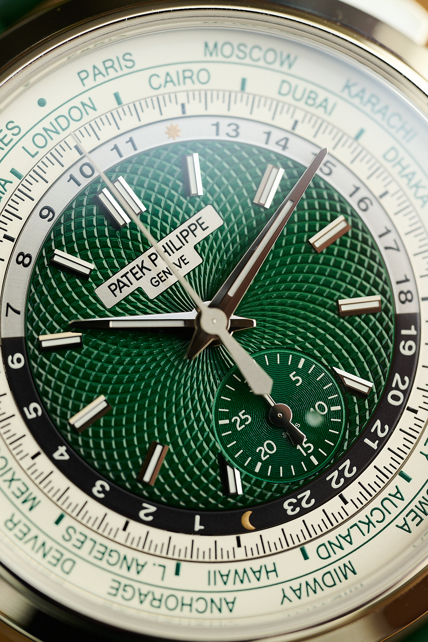 Now available, a Patek Philippe World Time Chronograph in platinum.