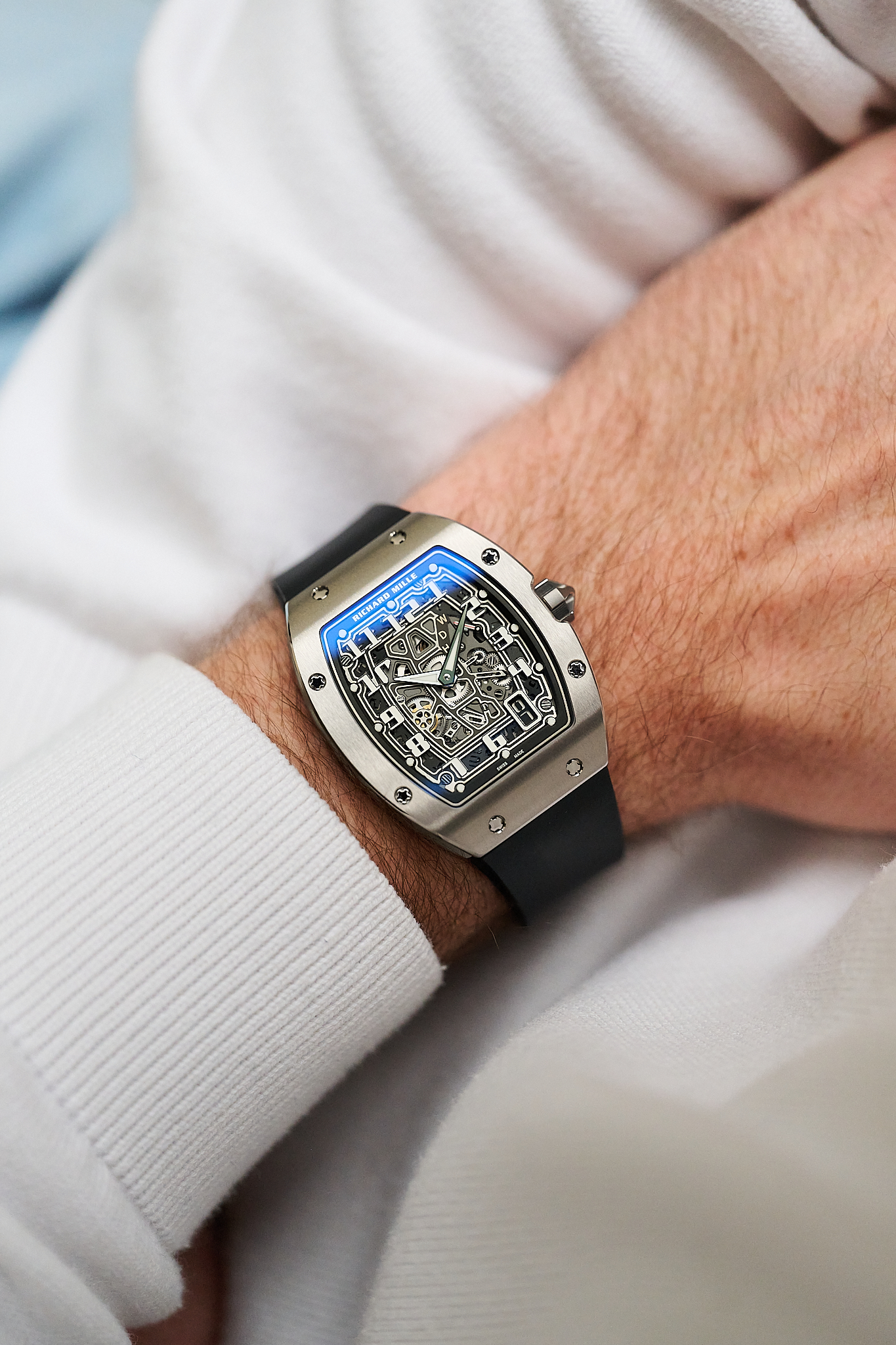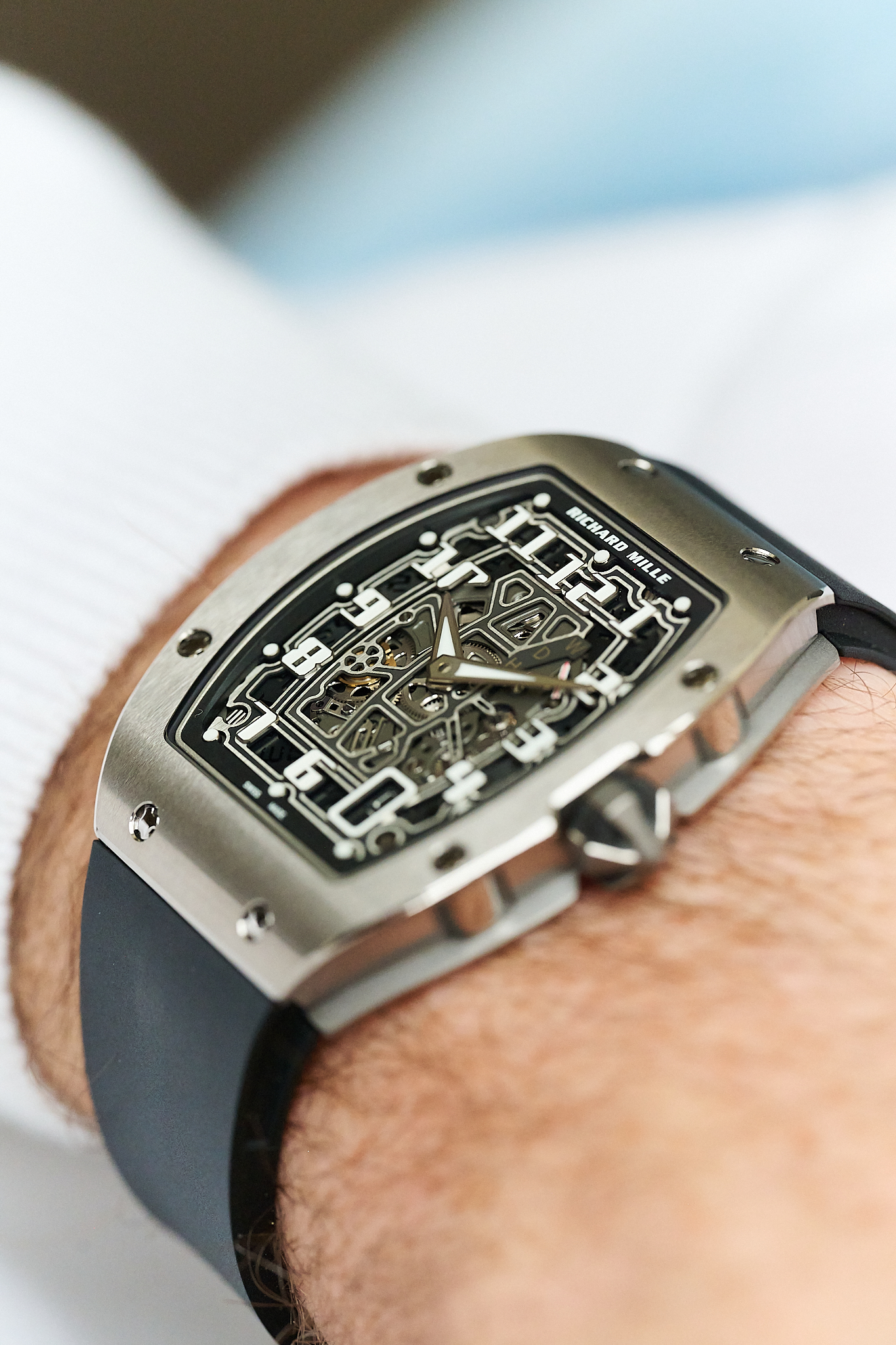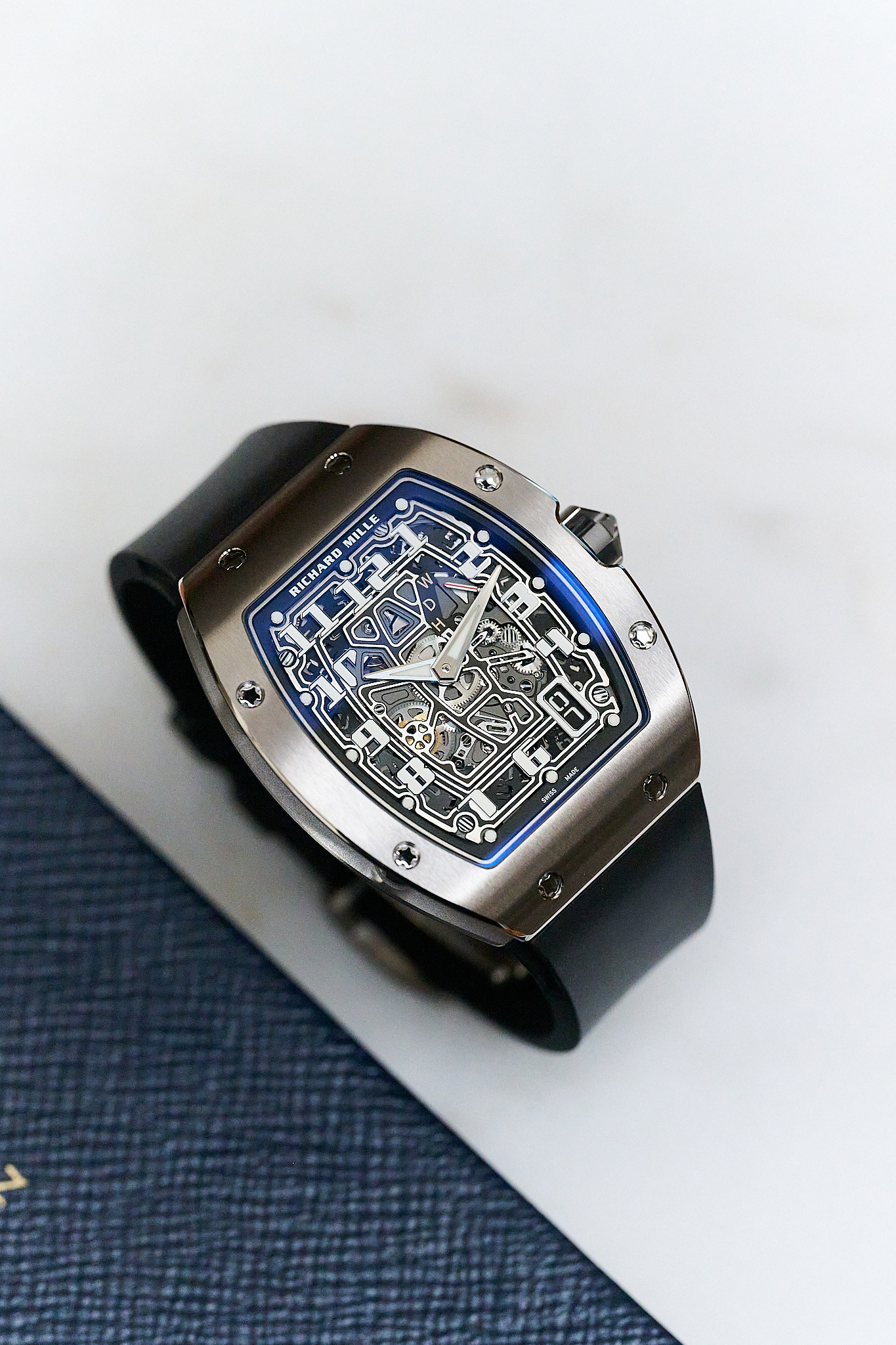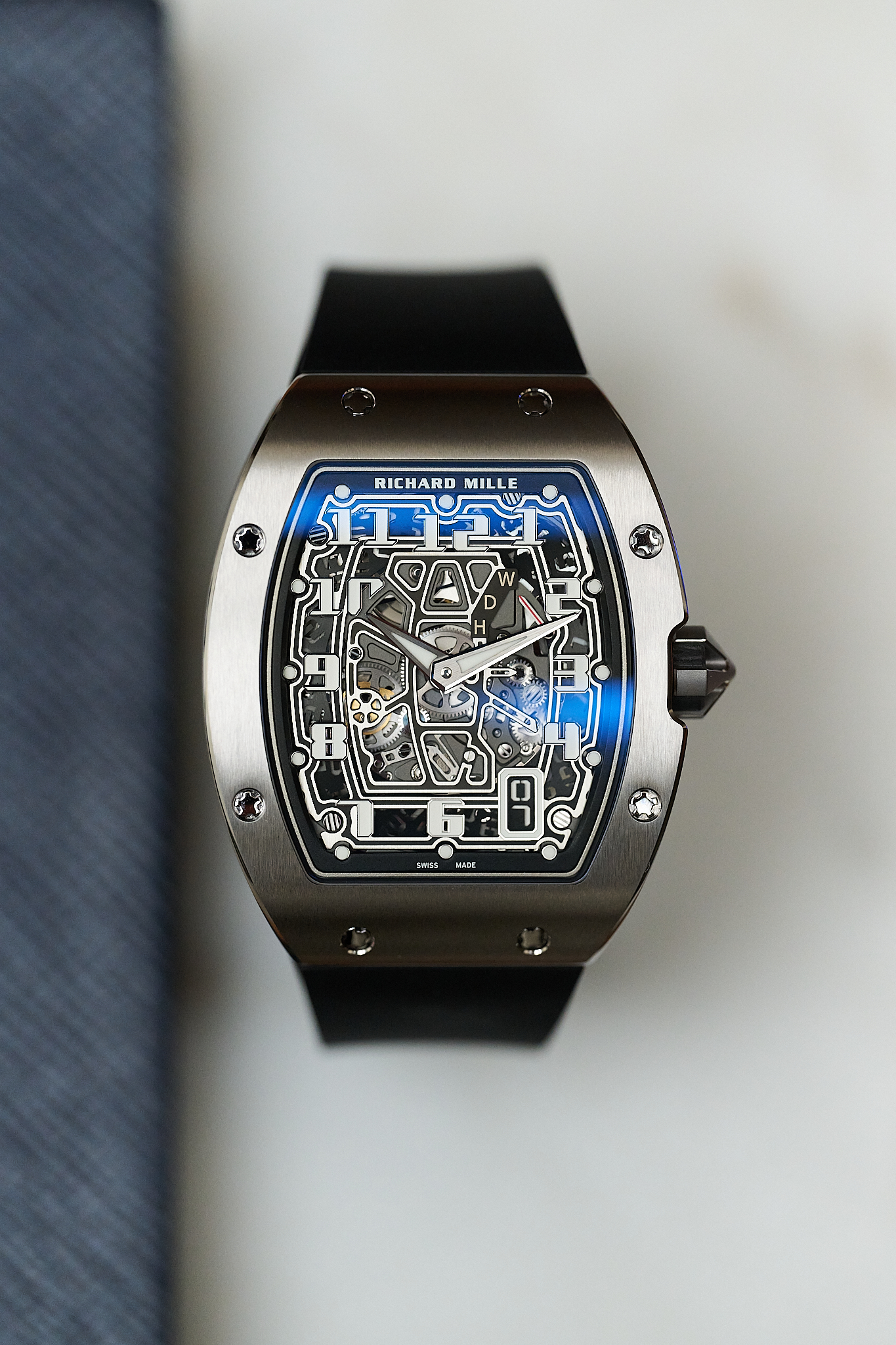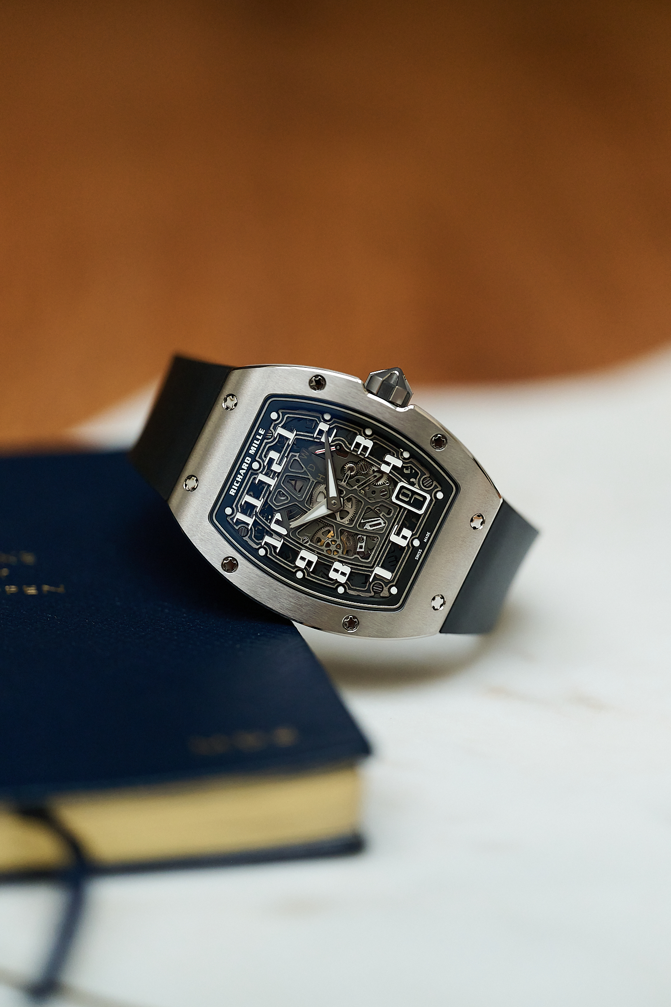 Where many Richard Mille references lean into spectacle, the 67-01 takes the opposite route: impossibly slim, feather-light, and designed to disappear on the wrist until you decide to admire it. The tonneau case - executed here in Grade 5 titanium - retains the unmistakable Mille silhouette, but the proportions are wonderfully pared back, making it one of the easiest RMs to live with day-to-day.