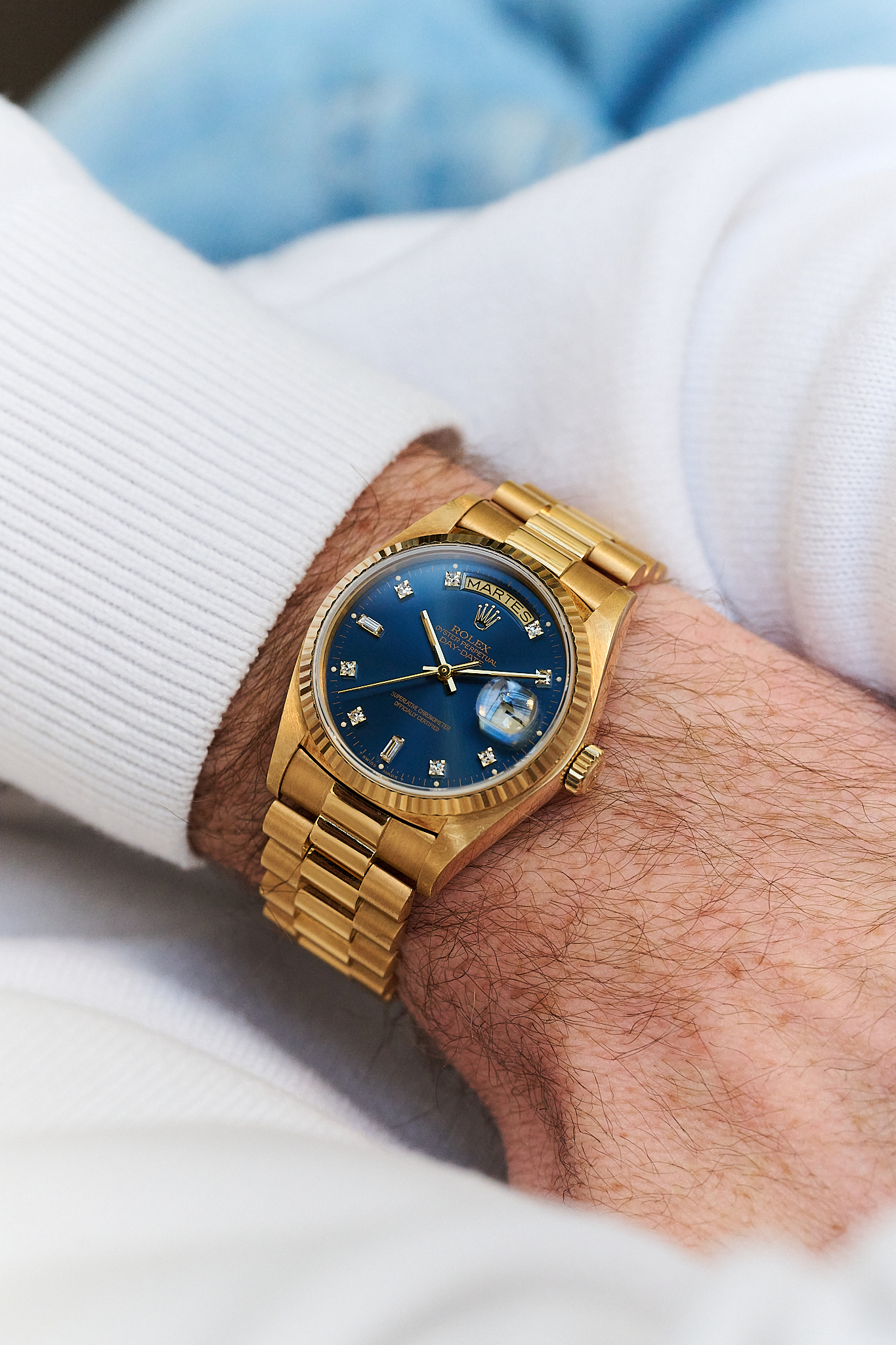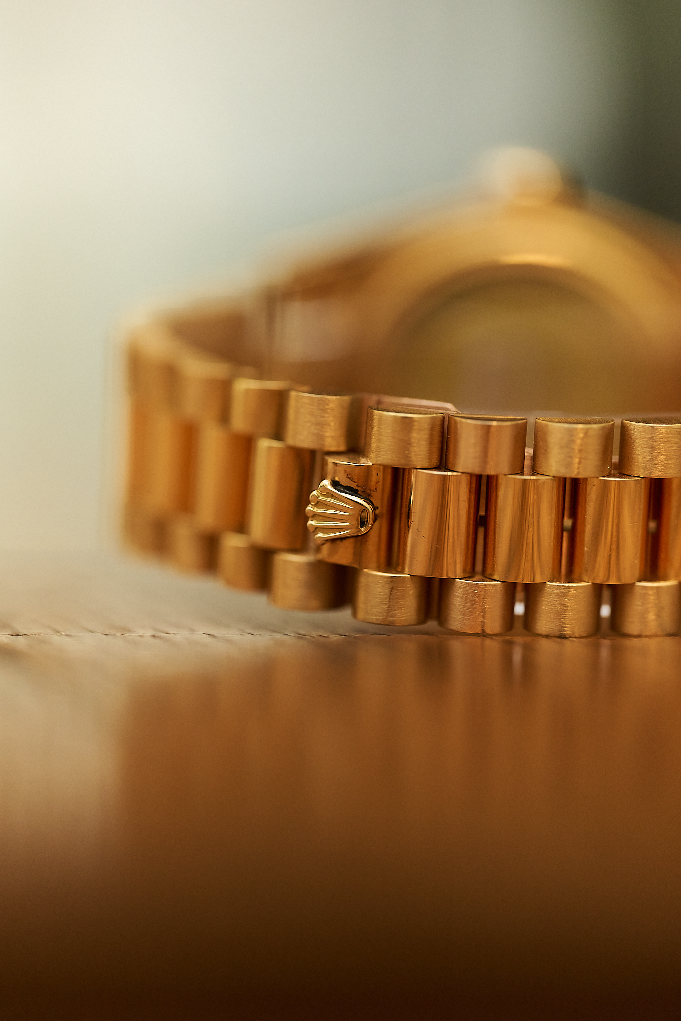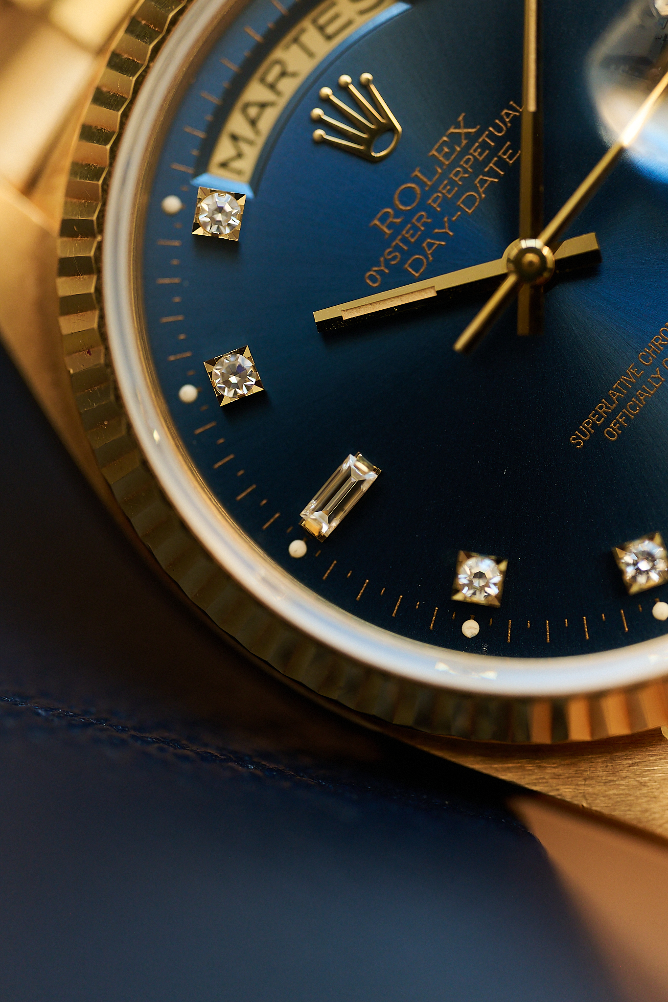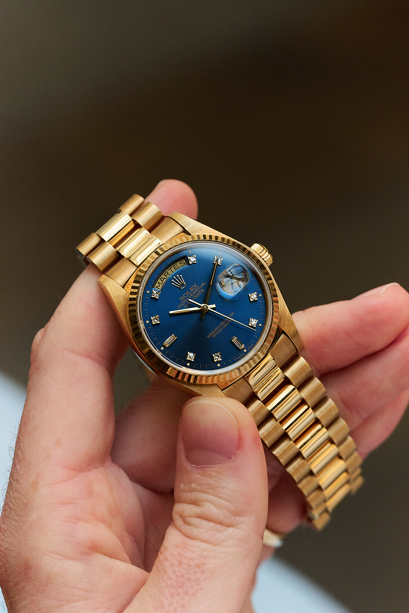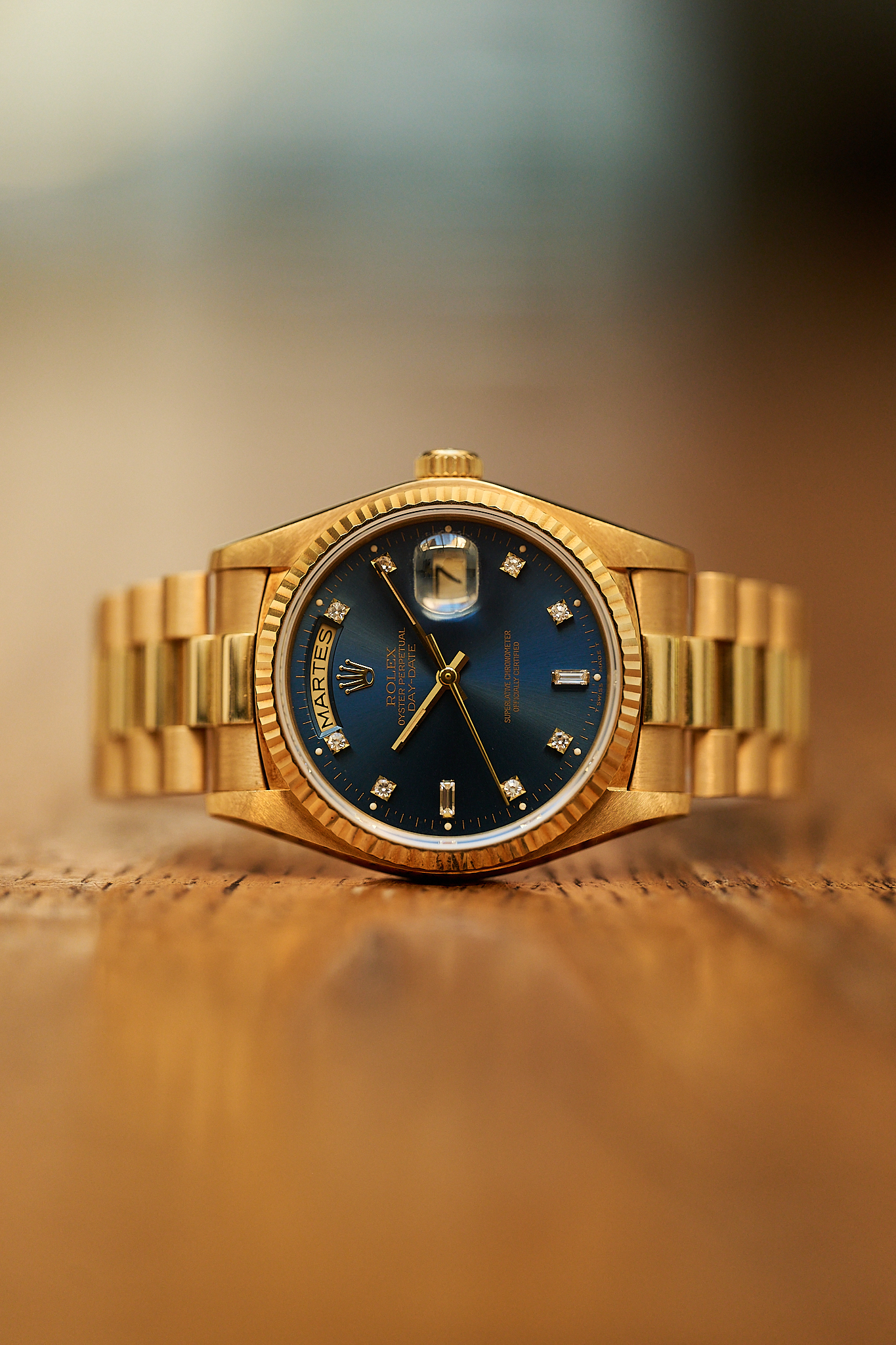 As a reference, the 18038 marks a pivotal moment in the Day-Date lineage - the first generation to introduce the sapphire crystal and the upgraded calibre 3055, bringing both improved reliability and a subtly more modern presence while still retaining all the warmth and charm of the four-digit Presidents. It’s the sweet spot between vintage character and everyday usability, which is exactly why collectors love it.