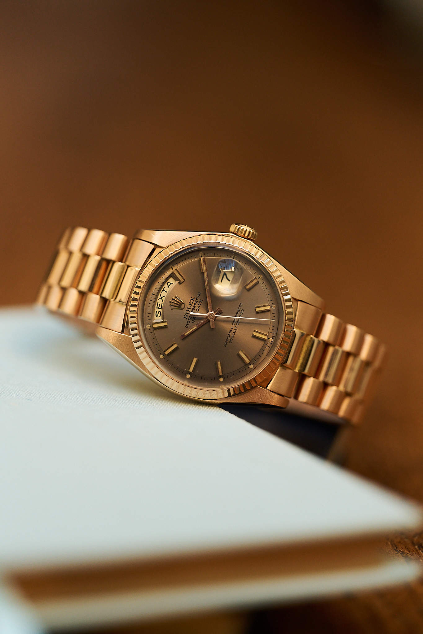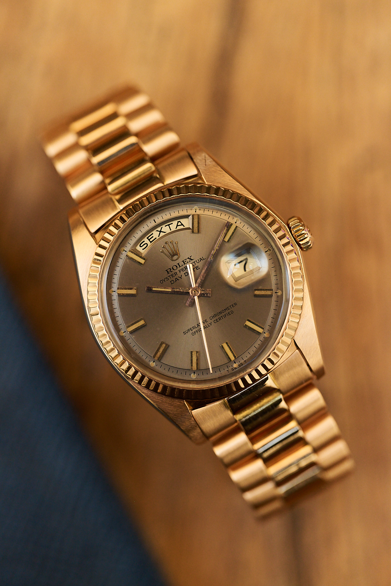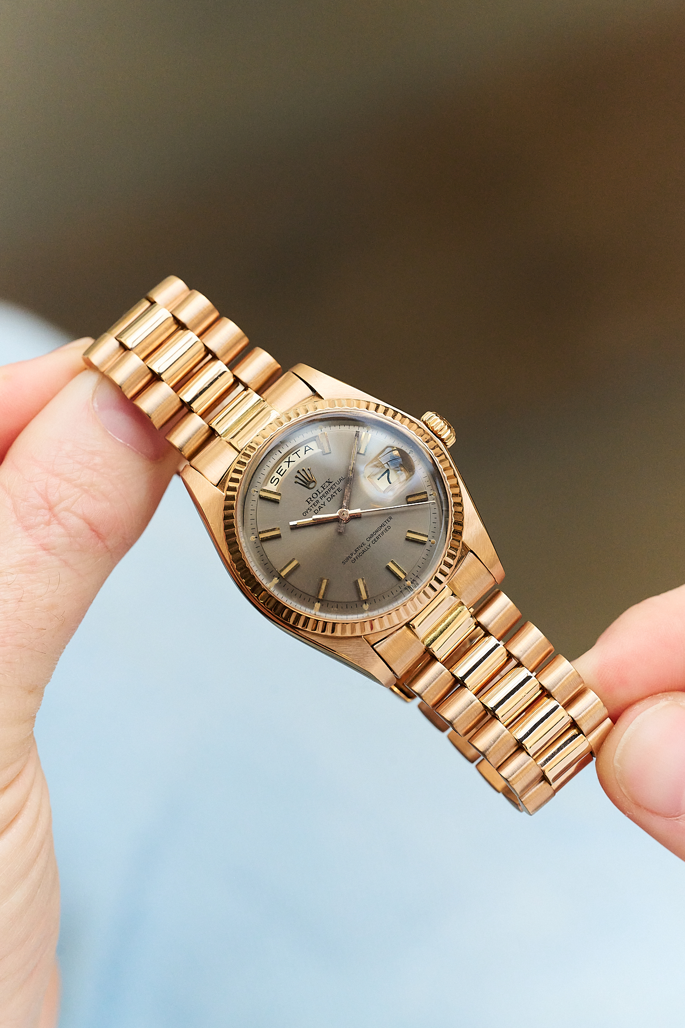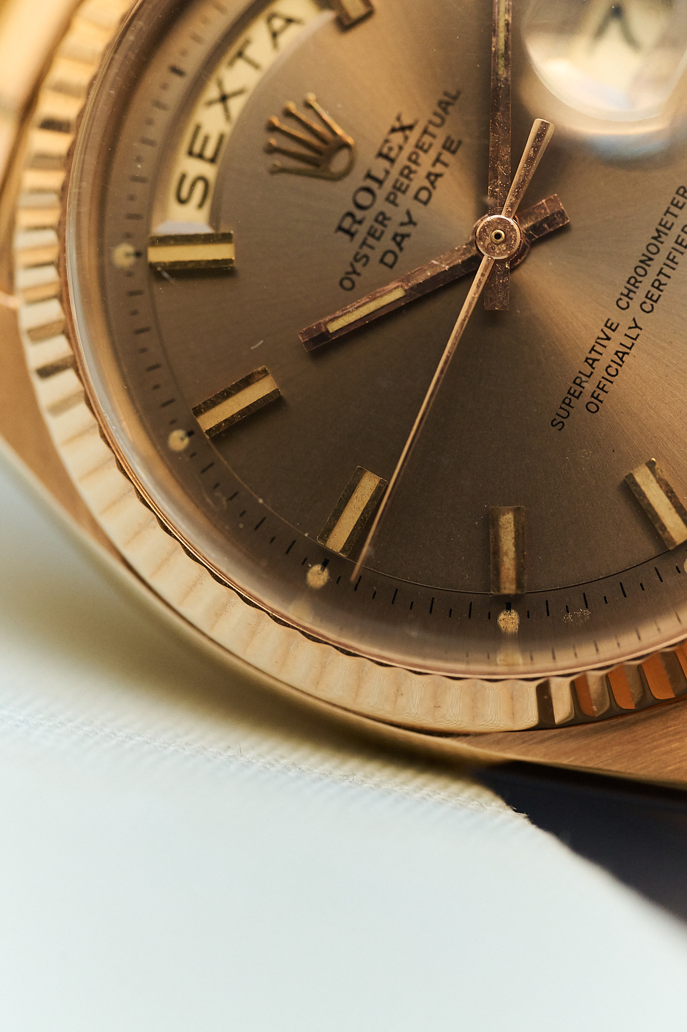 Now available, a very charming Rolex Day-Date 1803 in pink gold - a metal seldom seen in the reference.