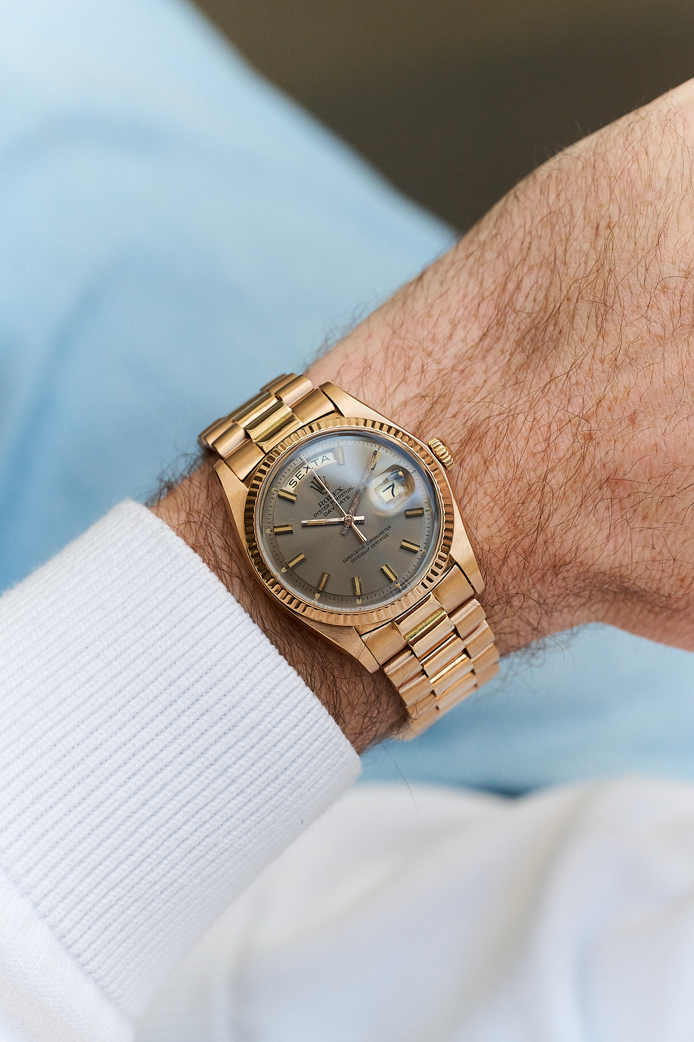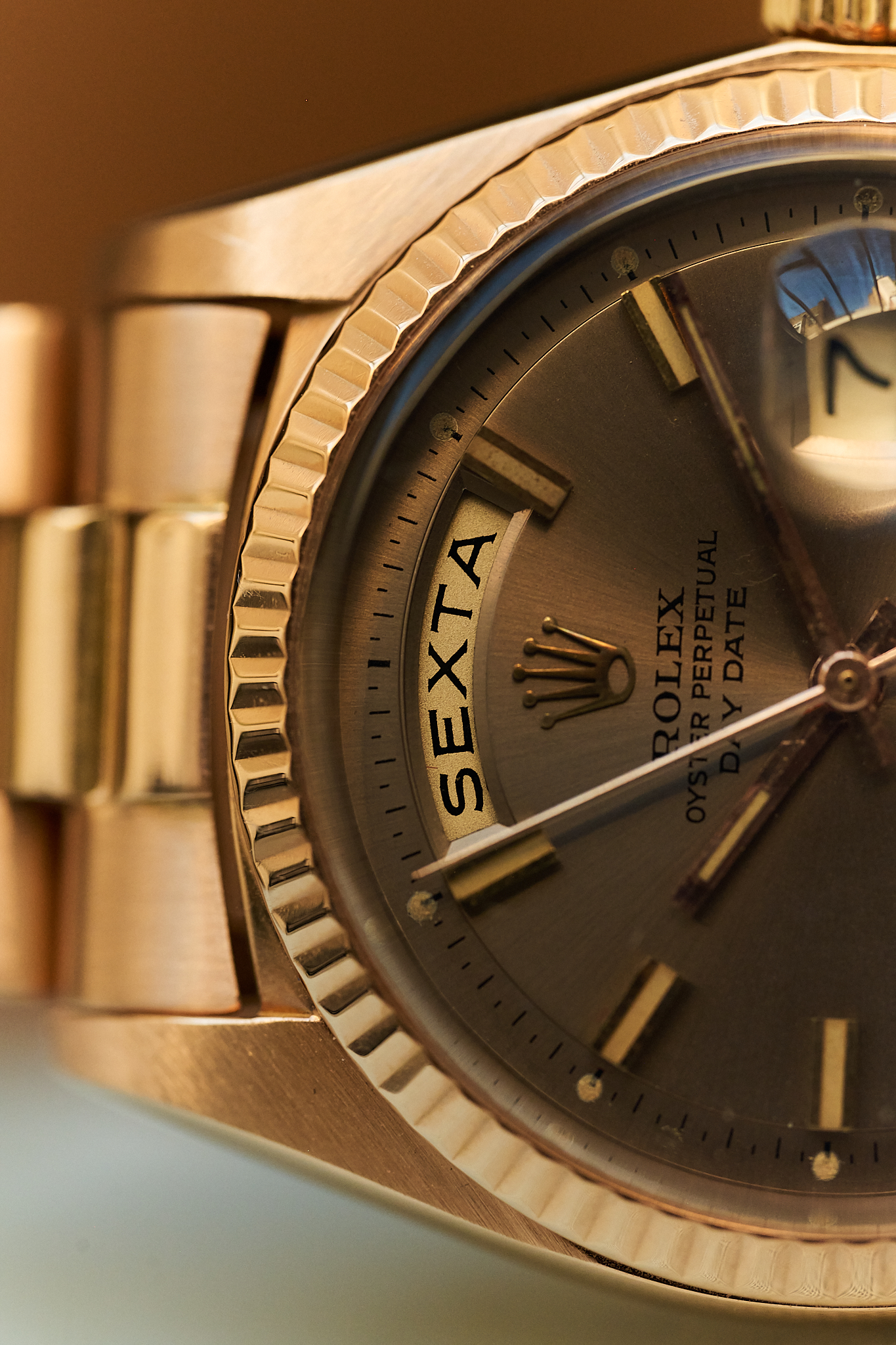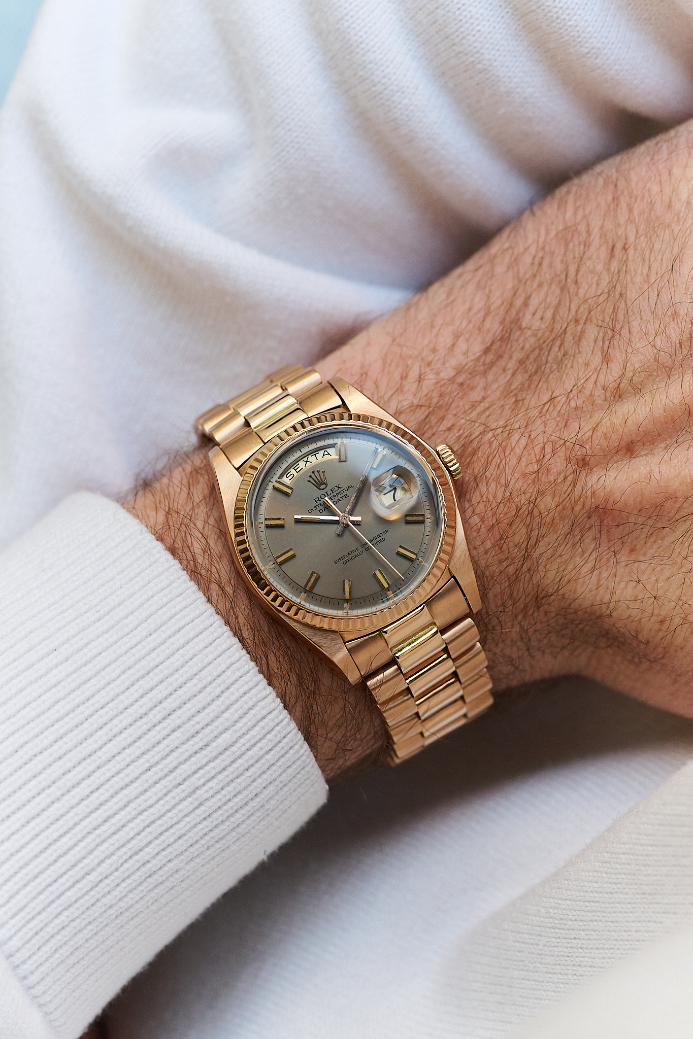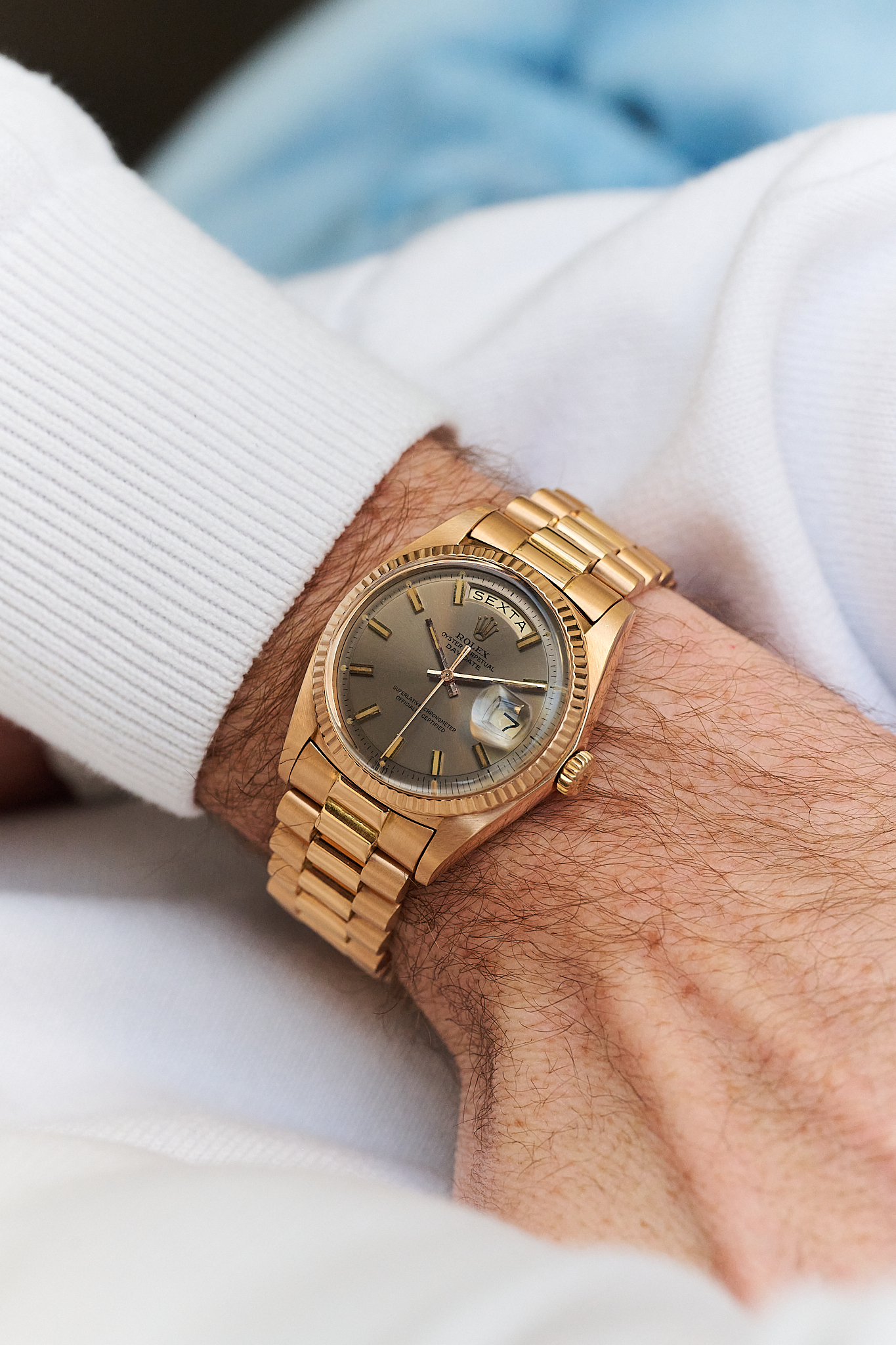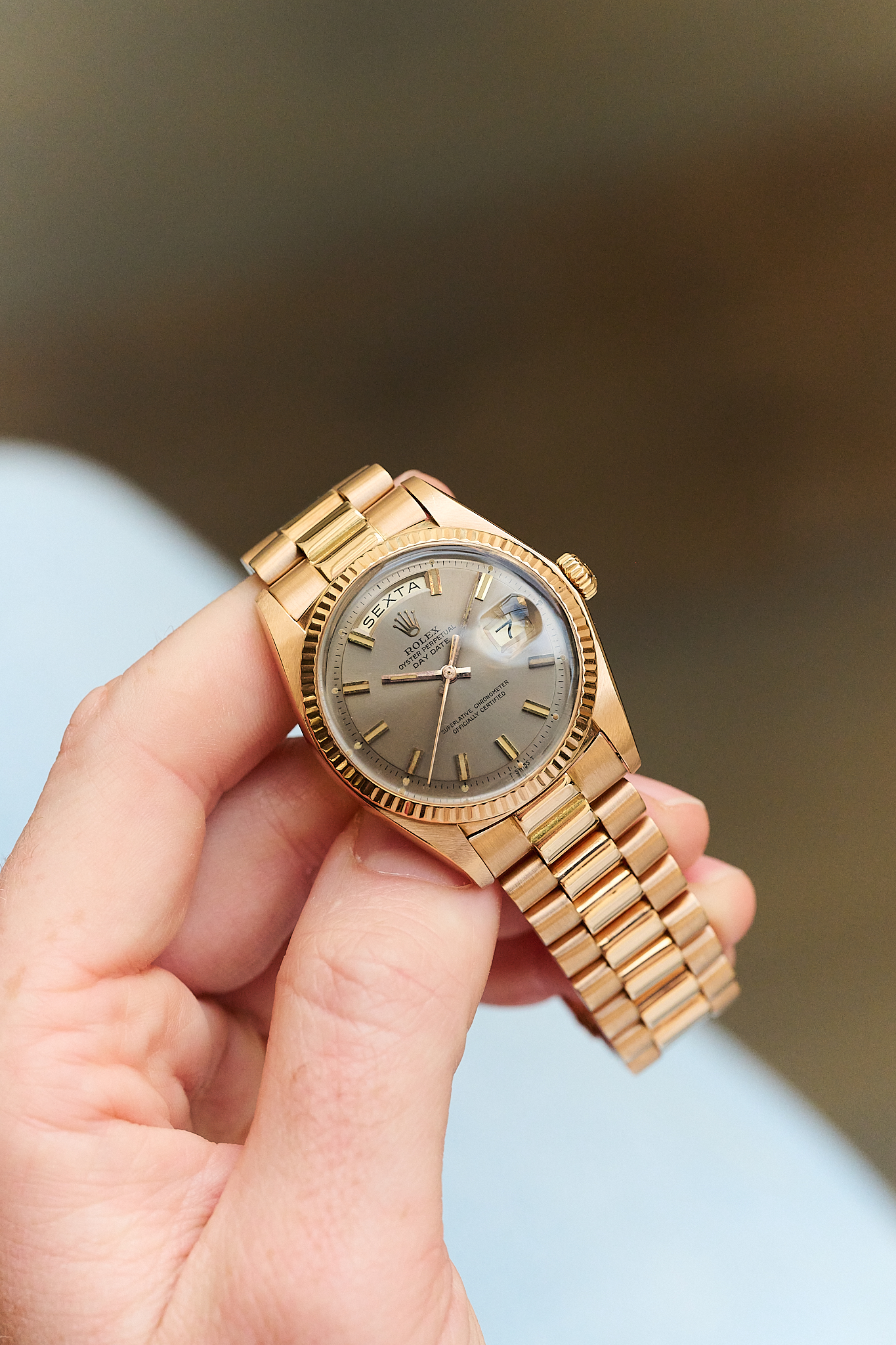 Now available, a very charming Rolex Day-Date 1803 in pink gold - a metal seldom seen in the reference.