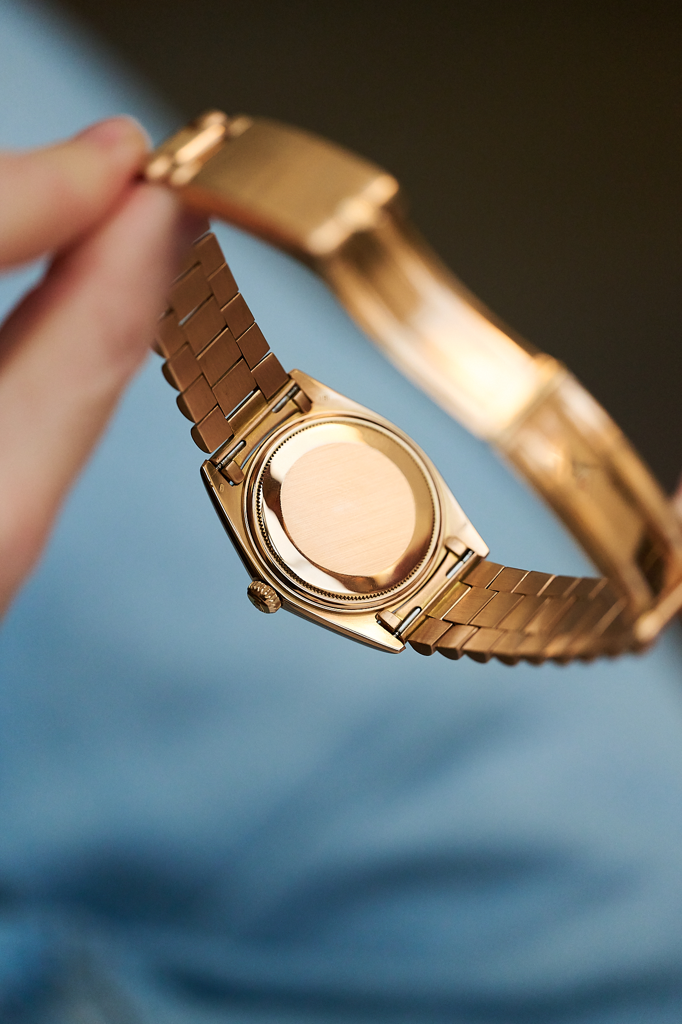 In exceptional condition throughout, the dial condition is extremely strong, missing just a few of its lume plots, and the case remains wonderfully crisp with thick, even lugs and clean lines. The President bracelet deserves special mention too: full-length and with absolutely zero stretch, which is almost unheard of for an early 1803. A rare, well-preserved, and genuinely appealing take on the pink-gold Day-Date - the sort of example that doesn’t surface often. Coming as a watch-only, it is available for viewing in London and purchase worldwide. Please get in touch for further information.