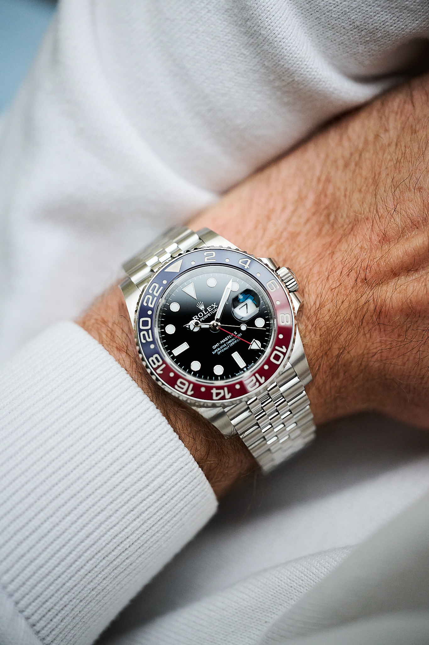 The Jubilee bracelet adds a touch of refinement to the otherwise tool-oriented design, creating a combination that feels both timeless and versatile - a look that, for many collectors, defines the contemporary GMT-Master II.