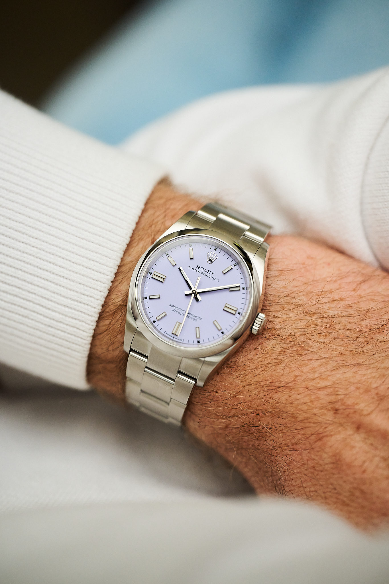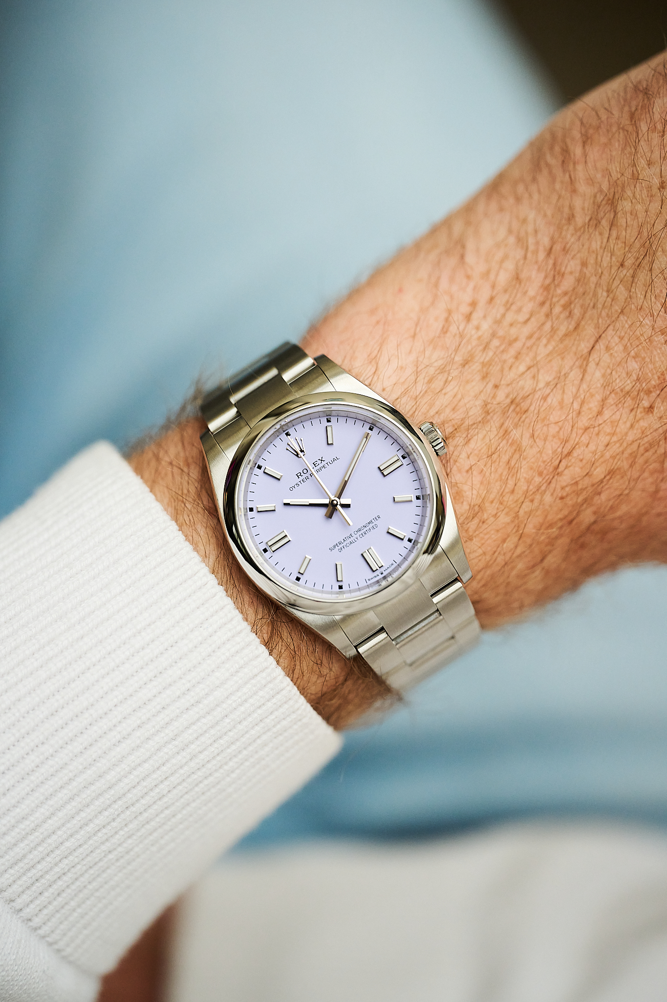 Introduced in 2023, the lavender dial expanded the vibrant palette of the Oyster Perpetual range, offering a softer, more refined tone compared with the bold “Stella-inspired” colours that preceded it. The result is a watch that feels quietly confident - playful yet elegant - and perfectly suited for both men and women.
